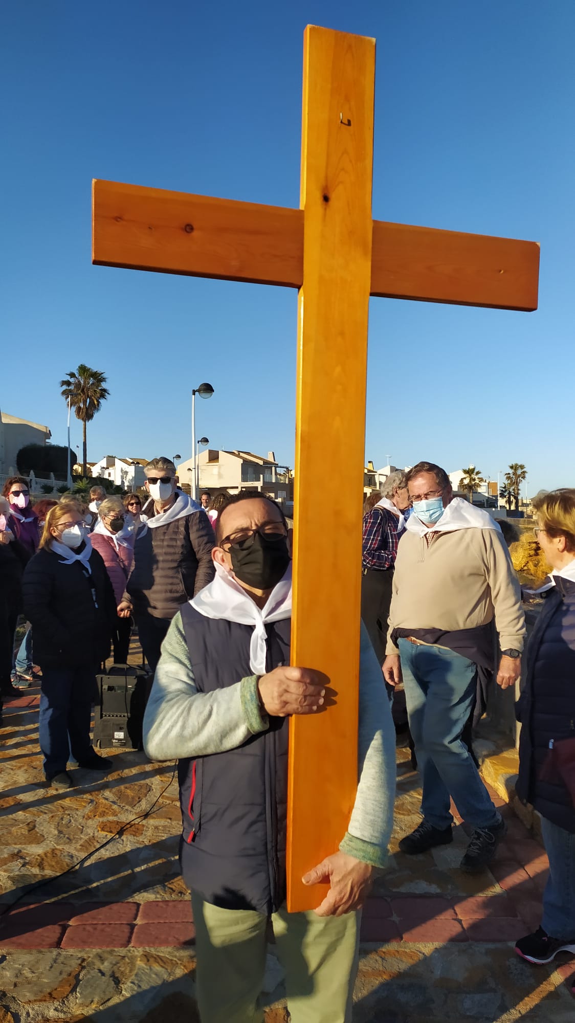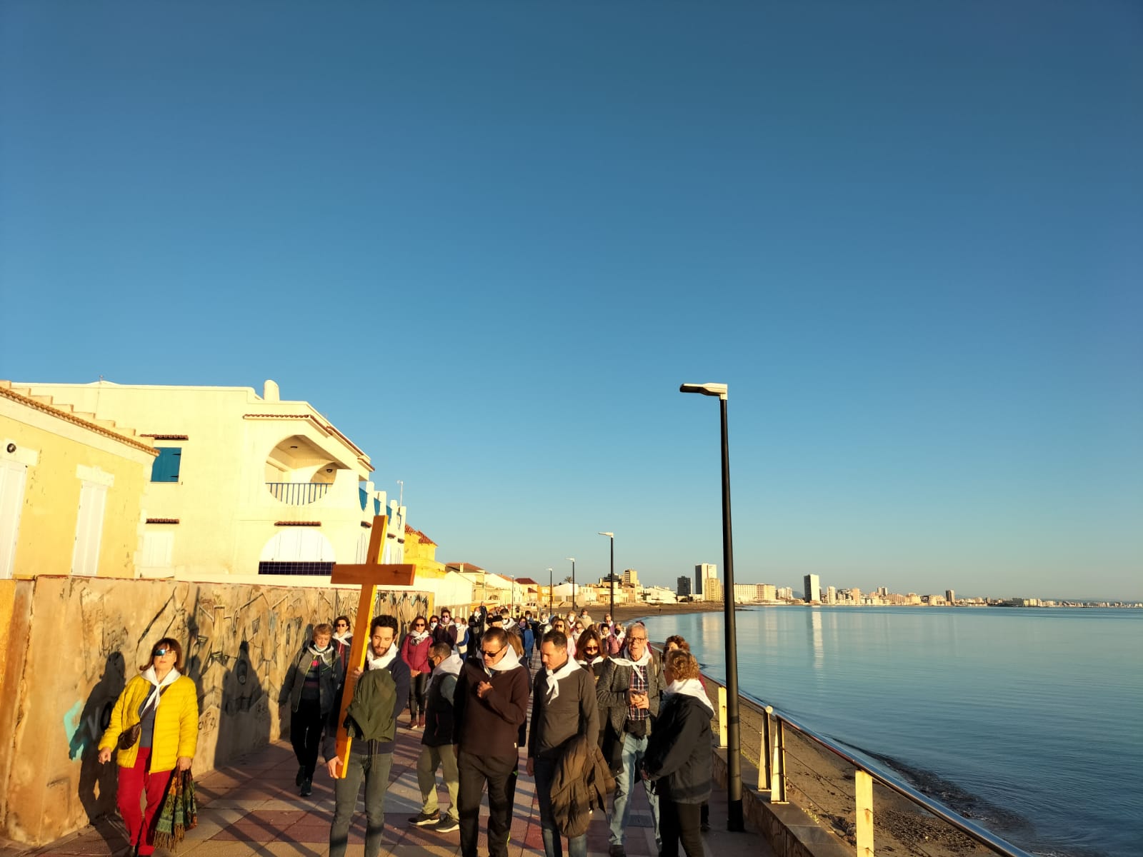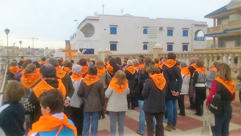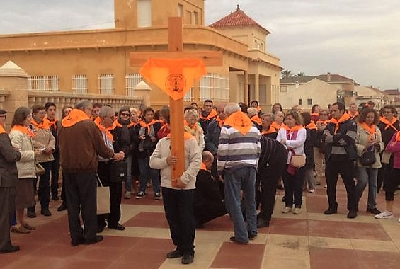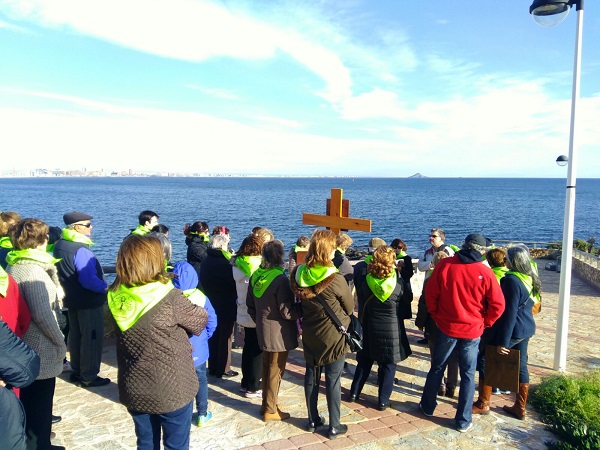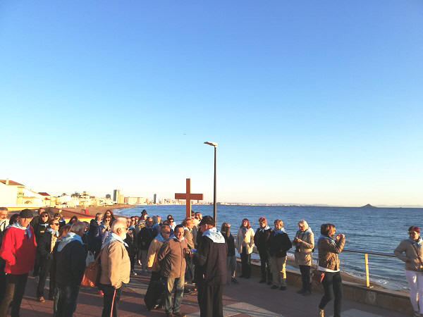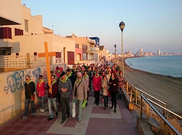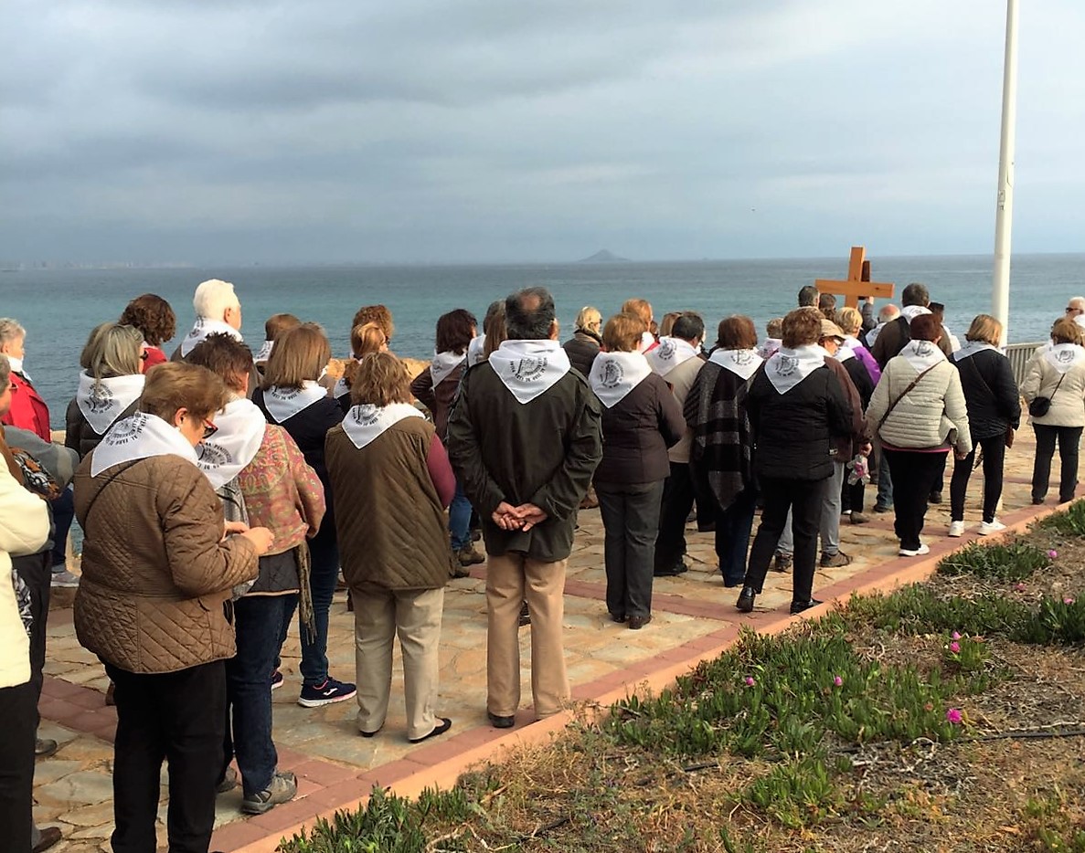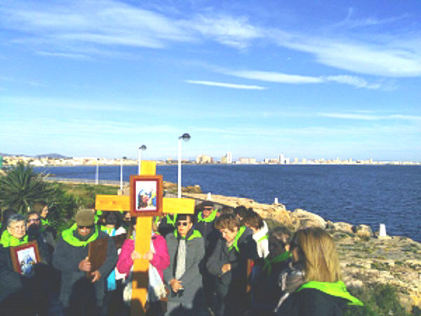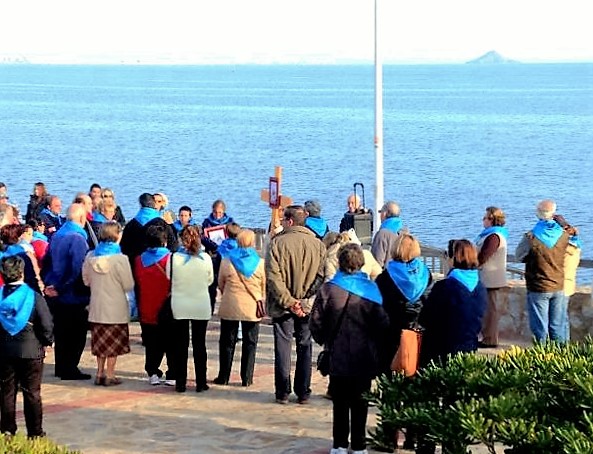 En el paseo de Levante nos reunimos todas las parroquias: Cabo Palos, Los Belones y La Manga |
