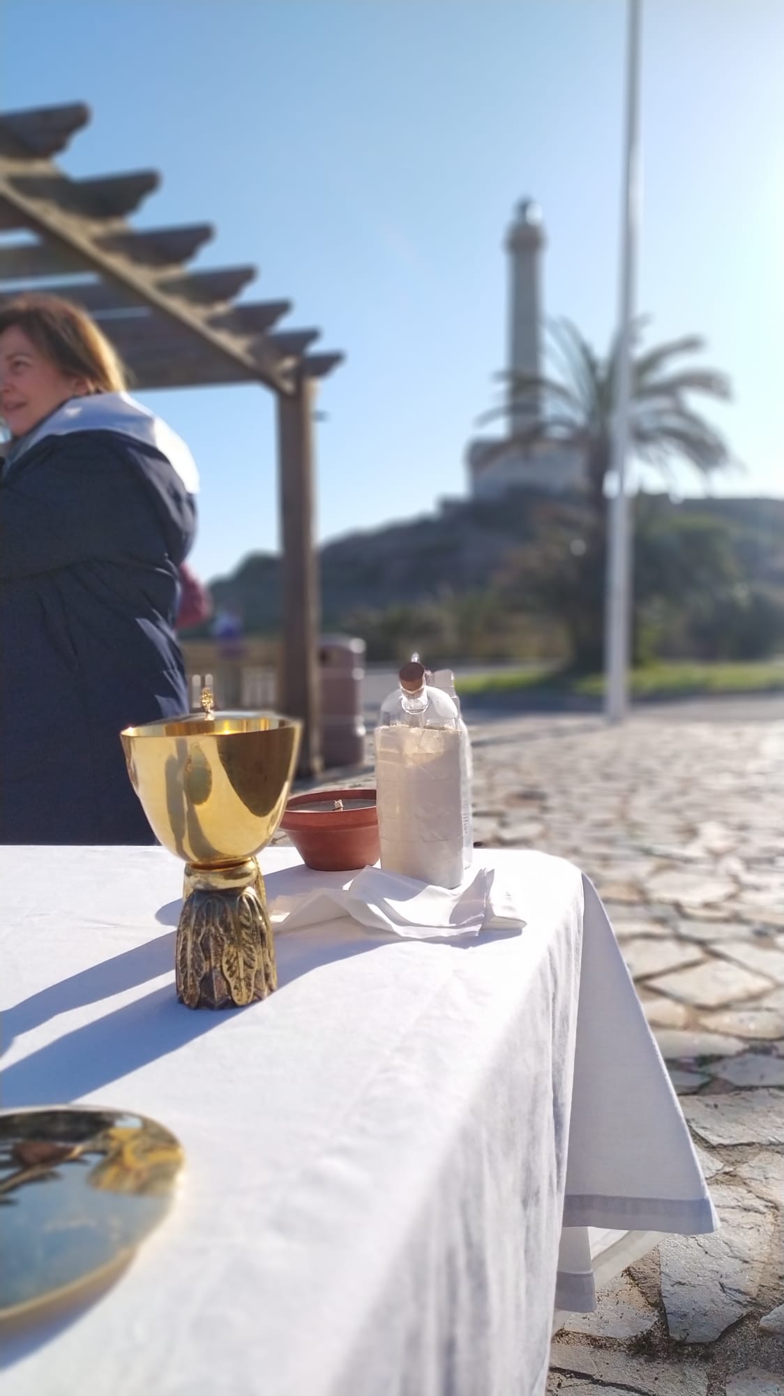 Concluida la Eucaristía, subimos a la explanada del faro a proclamar nuestra fe |