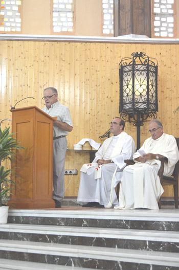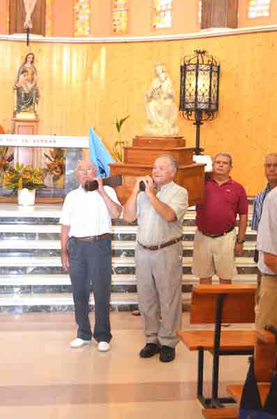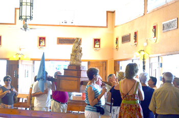 Tras el rezo de Vísperas, nos disponemos a salir de la iglesia hacia la orilla del mar |