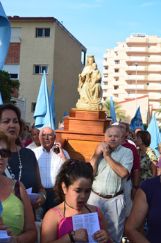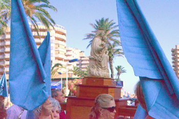 Las banderas de la Virgen del Carmen acompañaban a la imagen. |