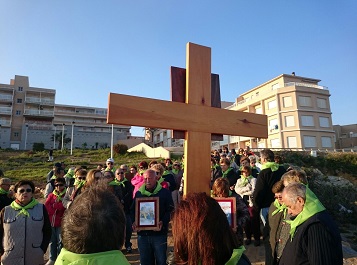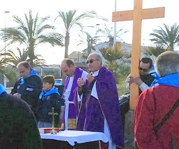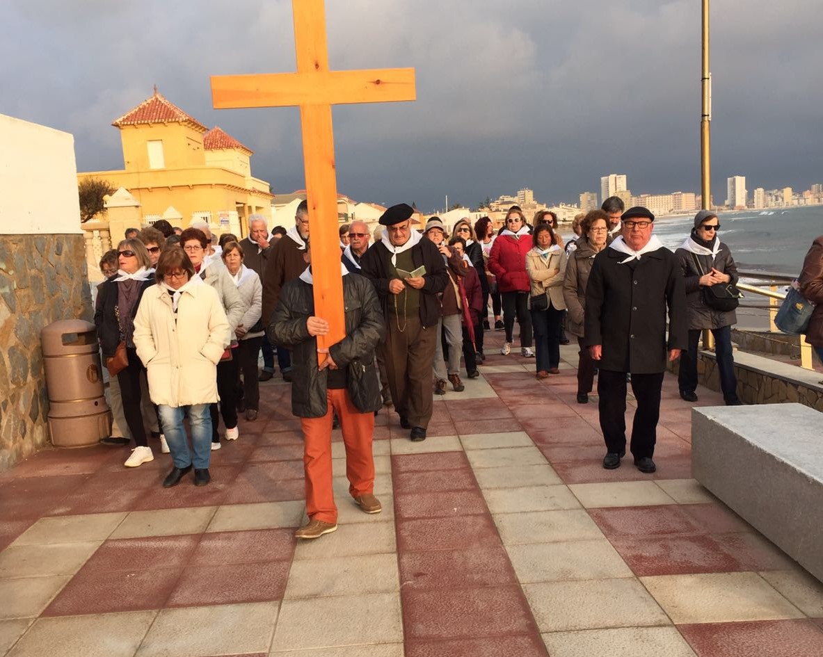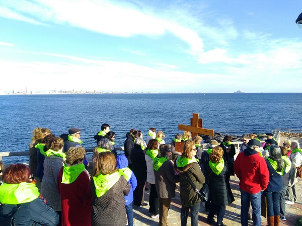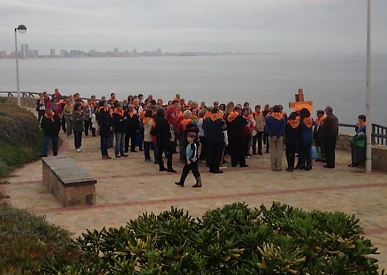 En el paseo de Levante nos reunimos todas las parroquias: Cabo Palos, Los Belones y La Manga |