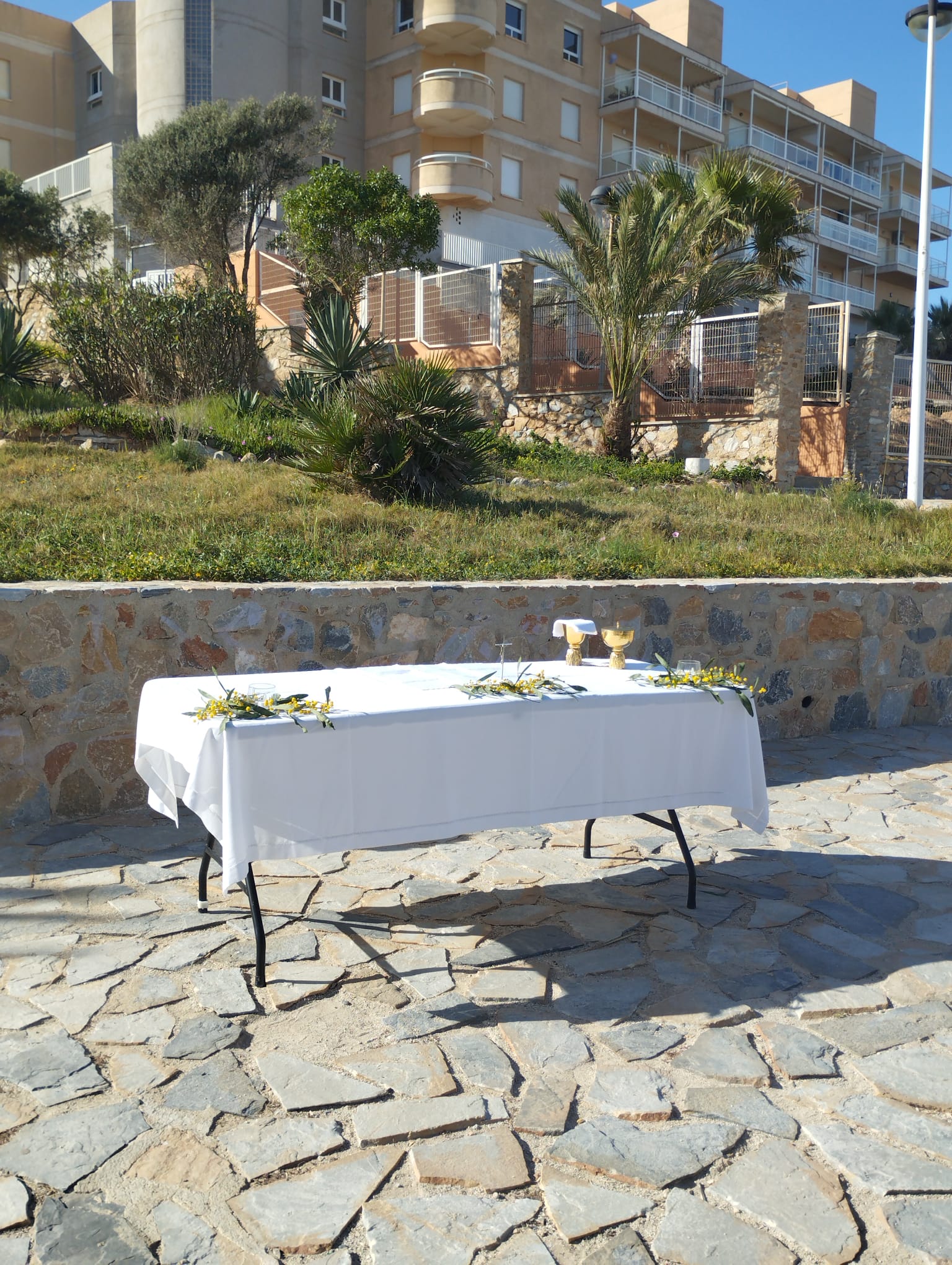 En la pérgola del final del paseo se celebró la Eucaristía |
