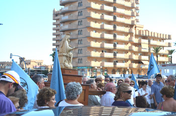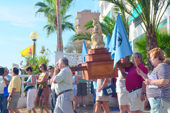 Las banderas de la Virgen del Carmen acompañaban a la imagen. |