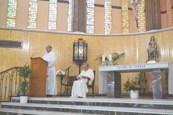 Tras el rezo de Vísperas, nos disponemos a salir de la iglesia hacia la orilla del mar |